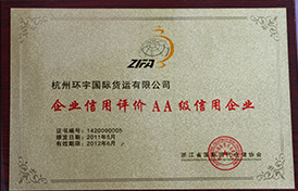 杭州環(huán)宇國際貨運有限公司企業(yè)信用評價AA級信用企業(yè)