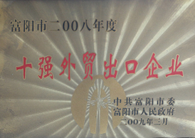 富陽市2008年度十強外貿(mào)出口企業(yè)