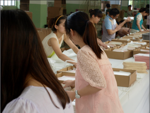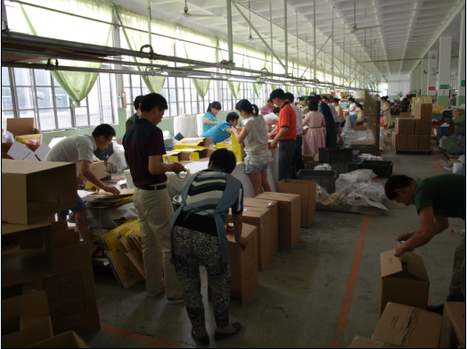 圖二:辦公室人員團(tuán)結(jié)一致,井然有序進(jìn)行包裝封箱