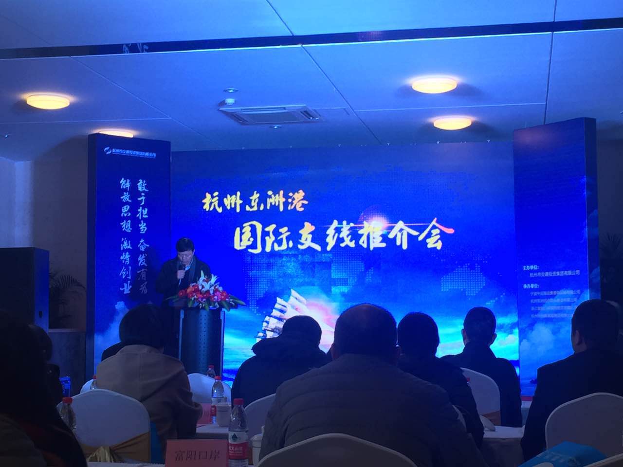 2017年1月12日,為響應(yīng)國(guó)家“一帶一路”和長(zhǎng)江經(jīng)濟(jì)帶發(fā)展戰(zhàn)略,東洲國(guó)際港作為杭州唯一外貿(mào)通商港口,召開了杭州東洲港國(guó)際支線推介會(huì)。