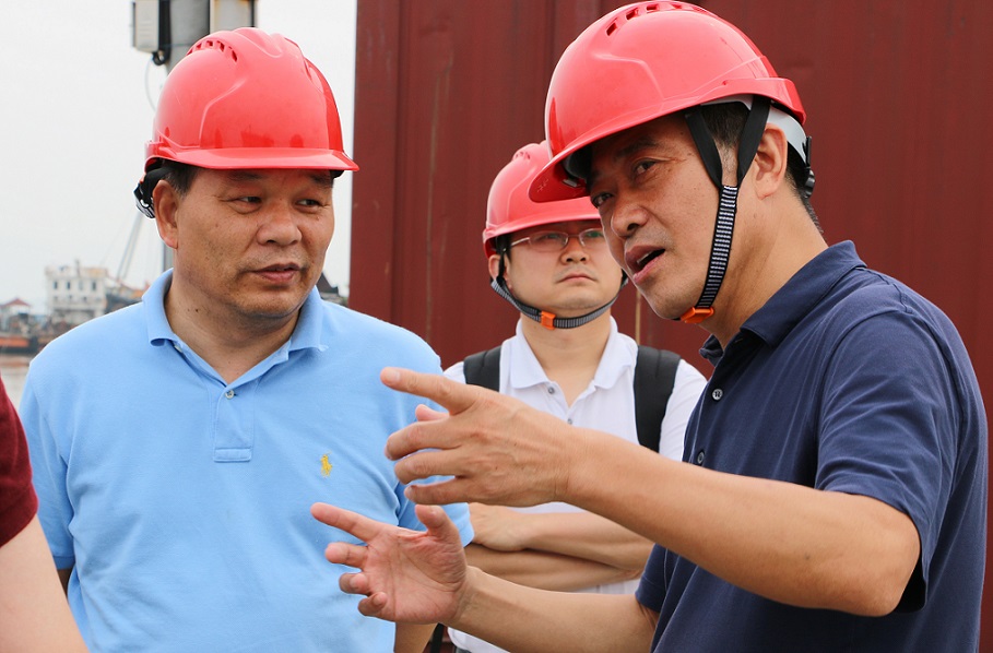 張善坤一行實(shí)地查看了口岸作業(yè)、海關(guān)H986控制室、岸線泊位等場(chǎng)所。
